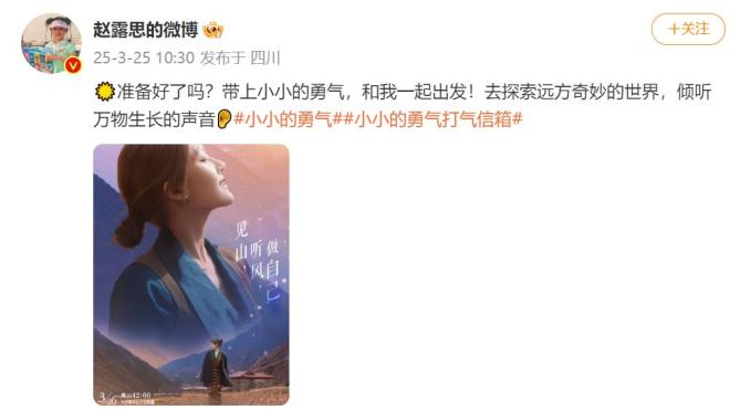 3月25日,赵露思发布微博,宣传综艺《小小的勇气》即将播出的消息。