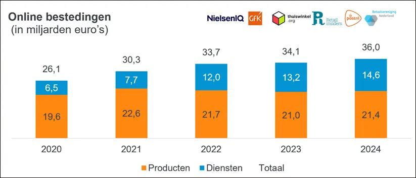 数据显示,荷兰人越来越爱线上购物 Thuiswinkel.org当地时间25日,荷兰线上商店协会Thuiswinkel发布一项研究结果。数据显示,荷兰消费者在线支出总额持续上升,到2024年将达到前所未有的360亿欧元,较2023年上涨5%。