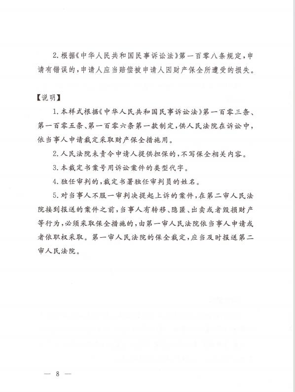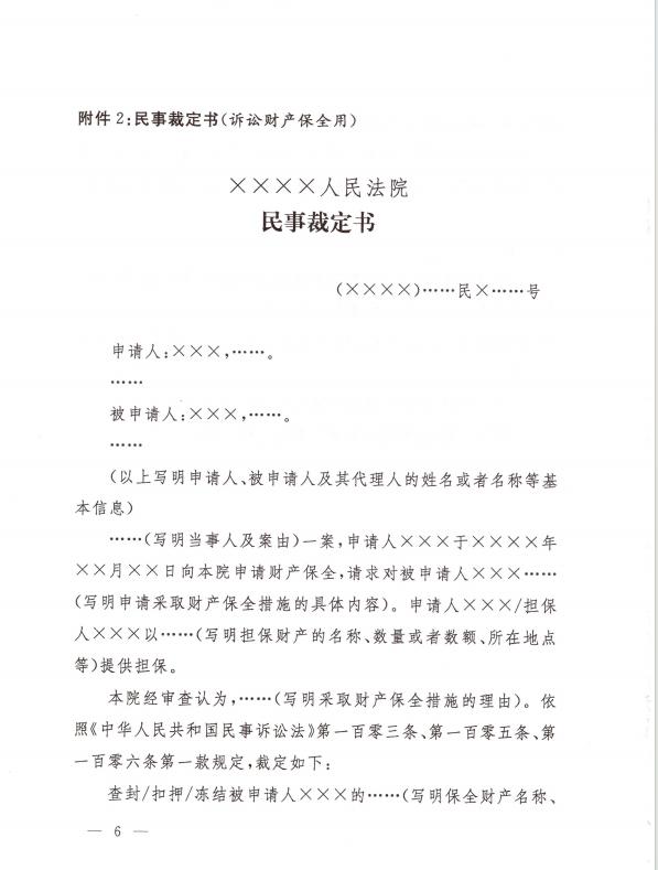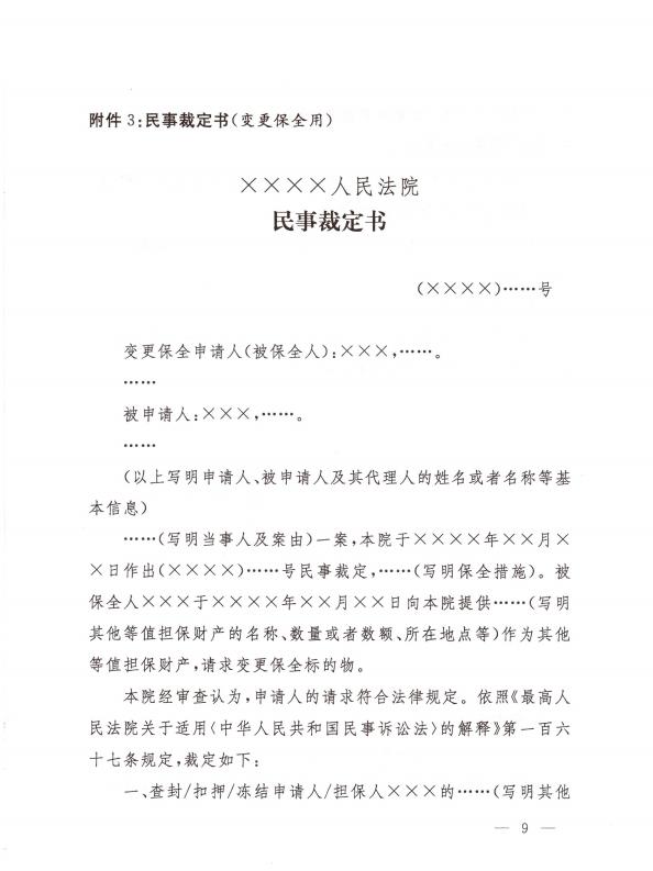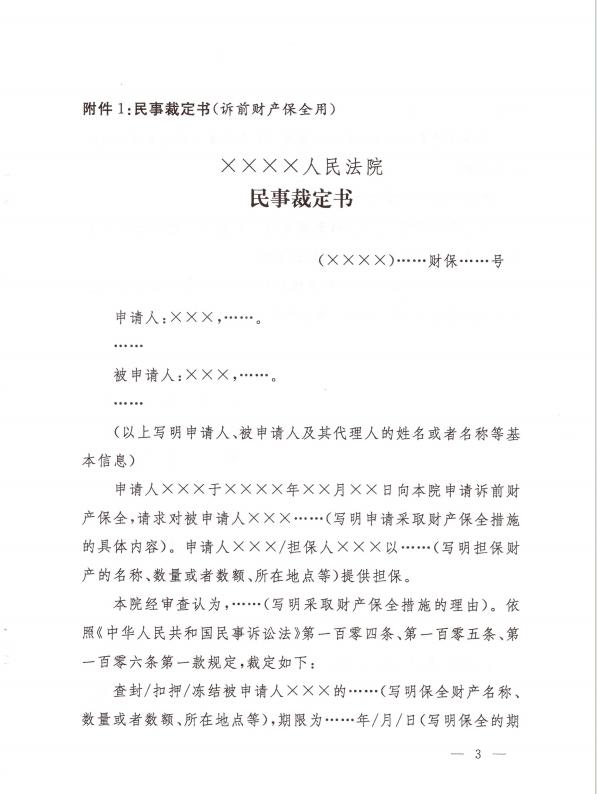 关于印发修改后的《民事裁定书(诉前财产保全用)》《民事裁定书(诉讼财产保全用)》《民事裁定书(变更保全用)》文书样式的通知