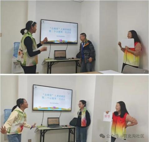 近日,官北沟社区"北极星"儿童观察团童眼看社区活动在社区慈善空间开展。开场"你比划我来猜"游戏让孩子们在笑声中迅速融入,肢体语言的创意表达与团队默契的配合,为活动奠定了温暖的基调。