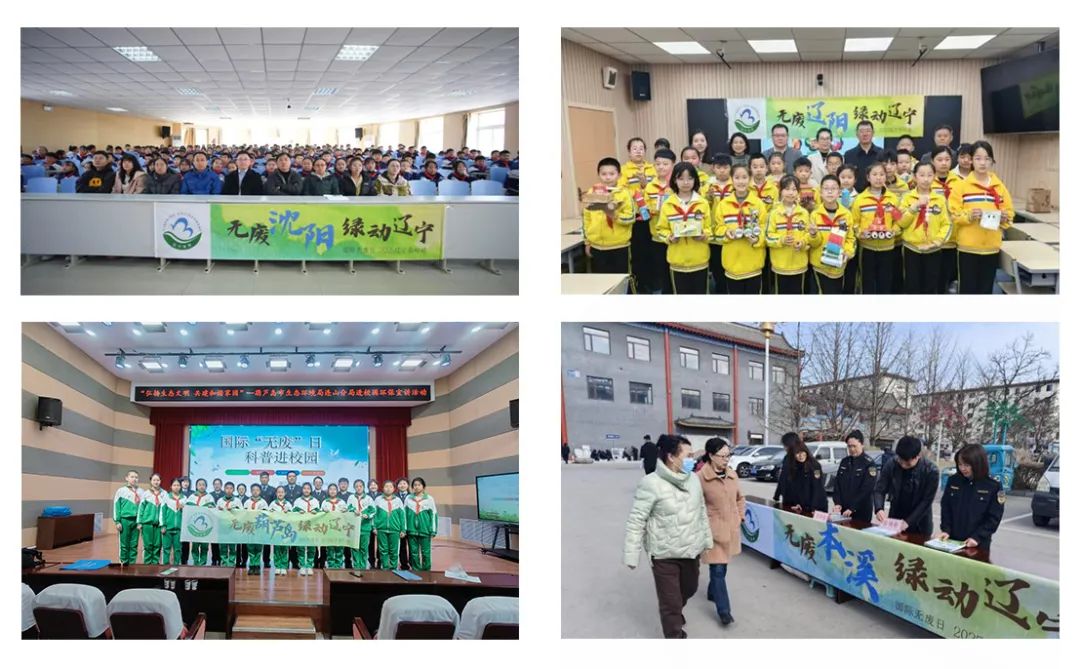 (二)教育进校园:播撒环保希望的种子沈阳新民市胡台学校、辽阳市弓长岭区雷锋小学、葫芦岛市实验小学,围绕“无废校园”建设,组织开展了“无废”理念宣贯、废弃物手工艺品创作、垃圾分类互动游戏等活动,进一步增强学生的环保意识。