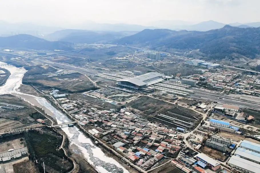 通化西站距离老通化站8公里,附近群山起伏,哈泥河水蜿蜒流过。从空中俯瞰,它俨然已是当地的一座全新地标。