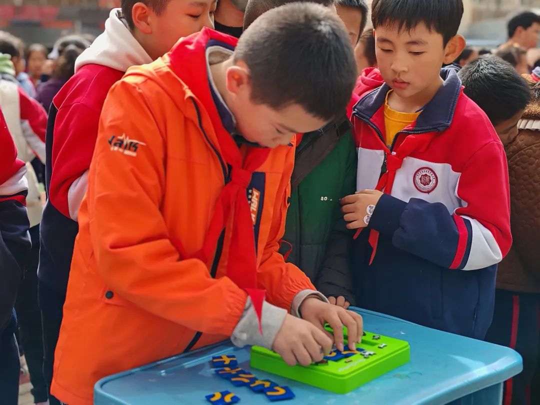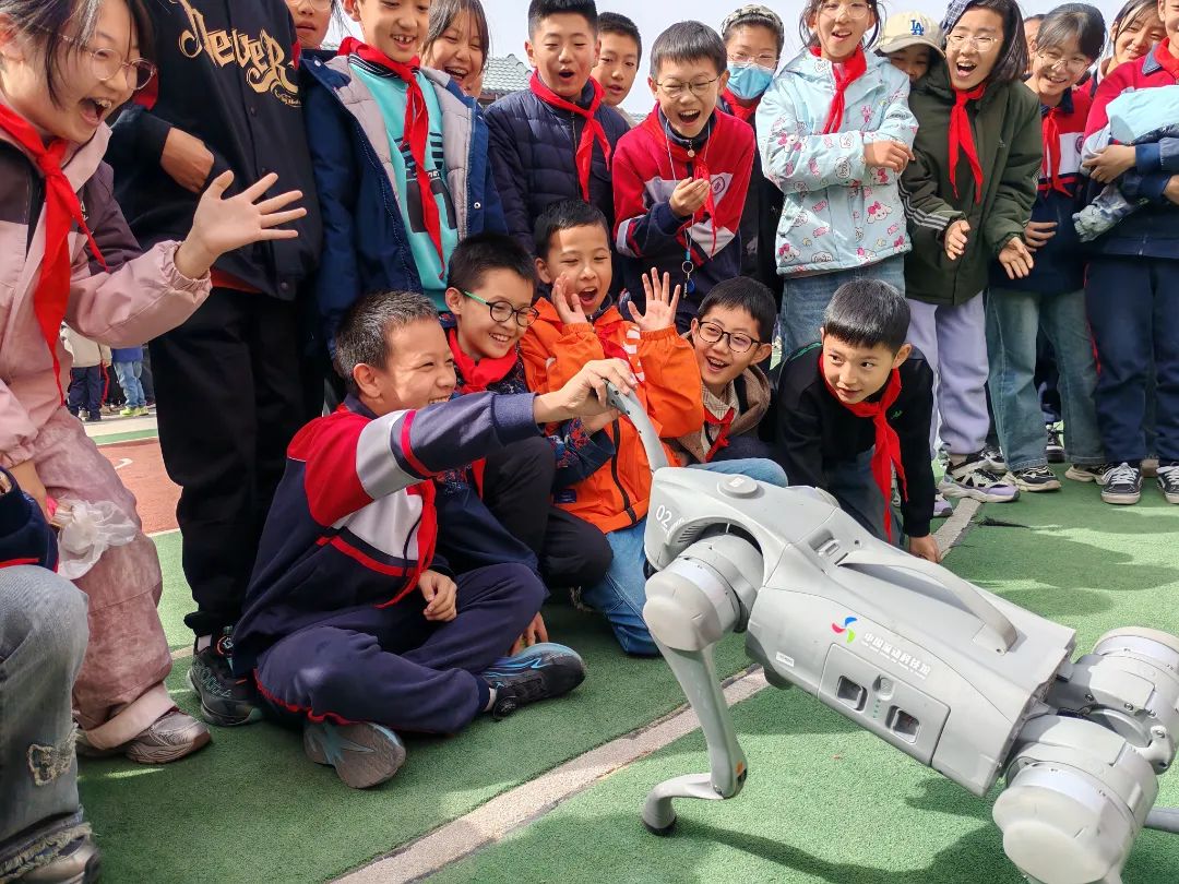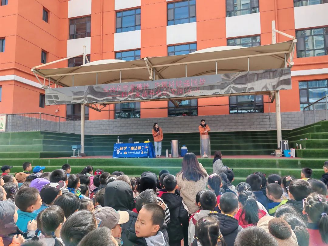 活动还为学校师生奉上一场精彩的“科学嘉年华”。趣味科学实验“科学魔法师”解析生活中常见的科学谜题;操场变身“科普集市”,同学们参与拓扑游戏,通过竞技体验兑换科学小制作材料包;展品互动区里,同学们亲自操作,揭秘展品背后的科学原理;前沿科技体验区中,机器狗带来精彩表演,与同学们亲密握手;球幕影院里,科普影片带领学生一同探索未知宇宙…