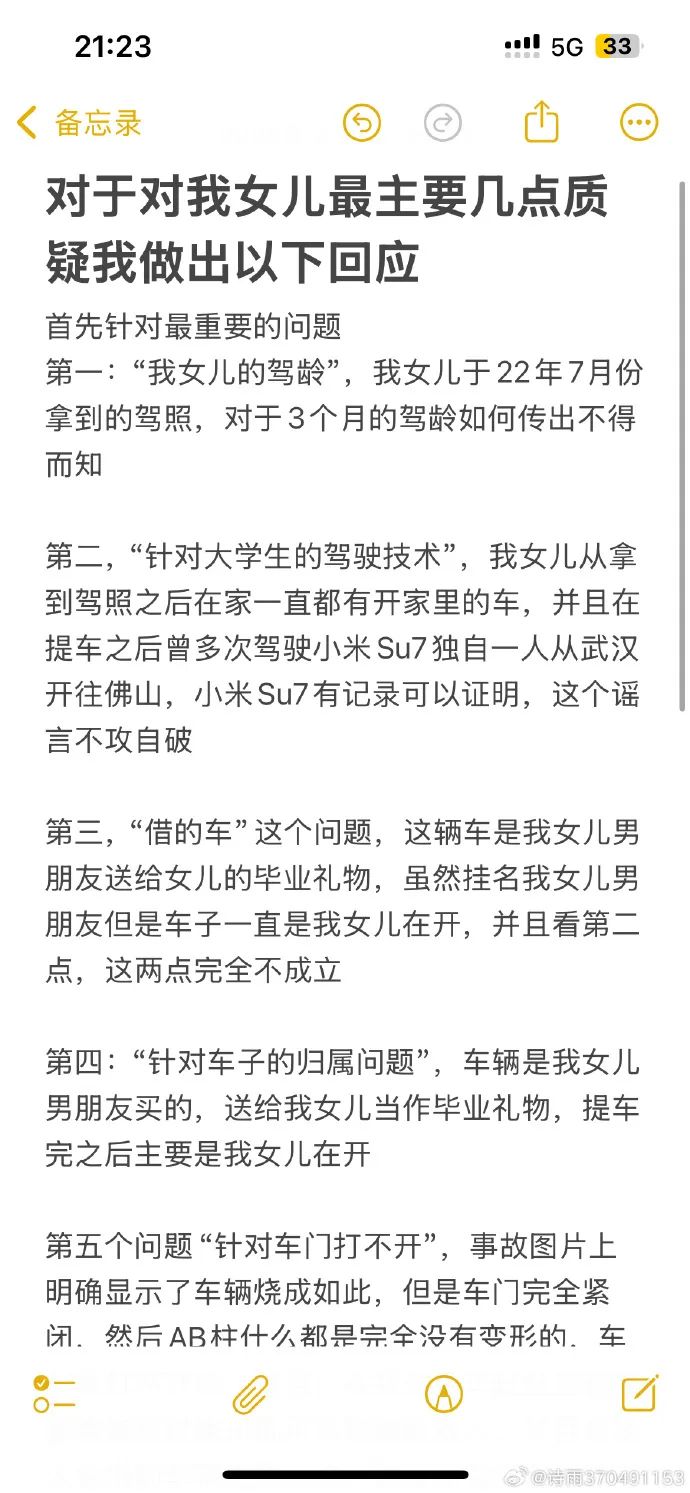 雷军回应“小米SU7爆燃致3死”事故:我必须站出来!事故驾驶员母亲回应质疑:女儿驾龄不止三个月