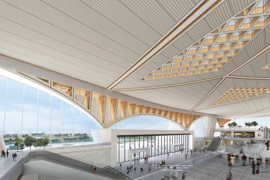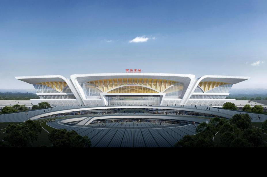 车站建筑总规模为39.4万平方米,其中站房10万平方米,整体建筑气势恢宏,寓意“秦山渭水、丝路长安”。