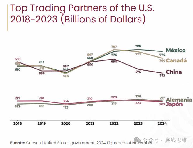 美国的主要贸易伙伴2018-2024(单位:十亿美元)《墨西哥计划》墨西哥汽车产业深陷“依附性陷阱”