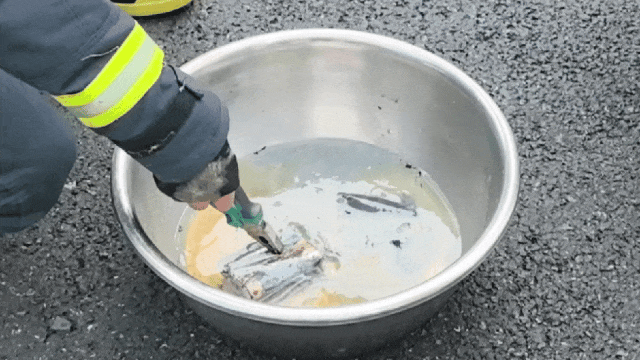 将充电宝的锂电池放入生理盐水中一分钟左右