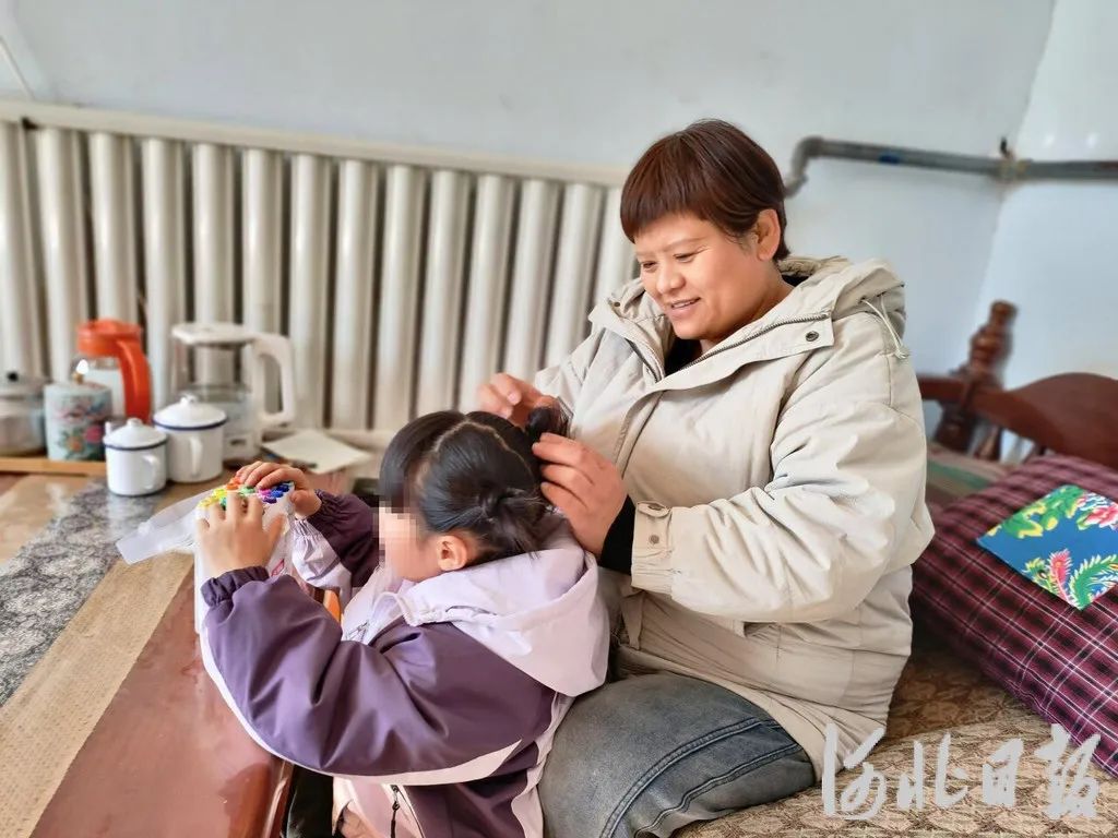 2月11日,“爱心妈妈”王梦雨帮“女儿”糖糖梳好头发,准备出门。河北日报记者孙青摄持续化支持,把关爱延伸到未来