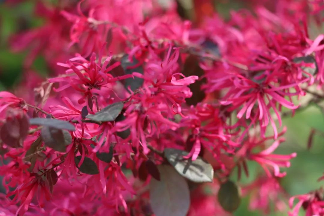 “红妆”灼春|古猗园里红花檵木花开灿然