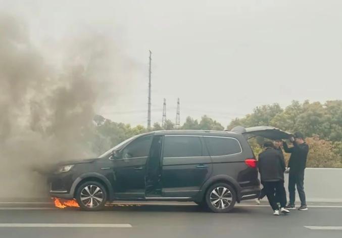 一车辆突然起火