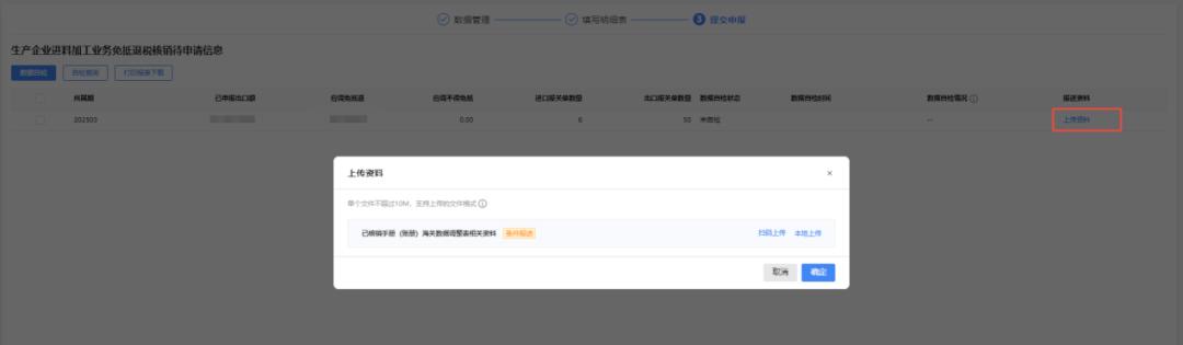 1点击“上传资料”按钮,弹出上传资料页面,可上传对应的附列资料。