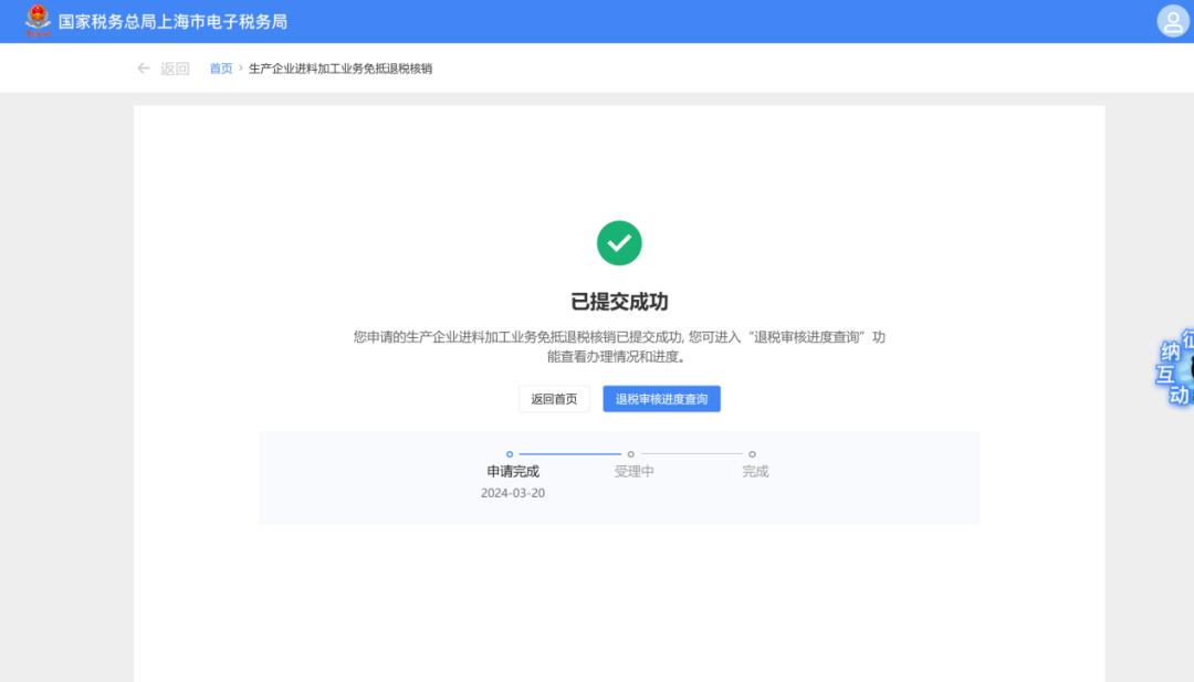 3税务机关受理审核完成后,纳税人可在新电子税局查看该流程结果。