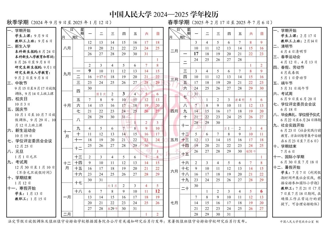 除此之外据中国人民大学新学期的校历