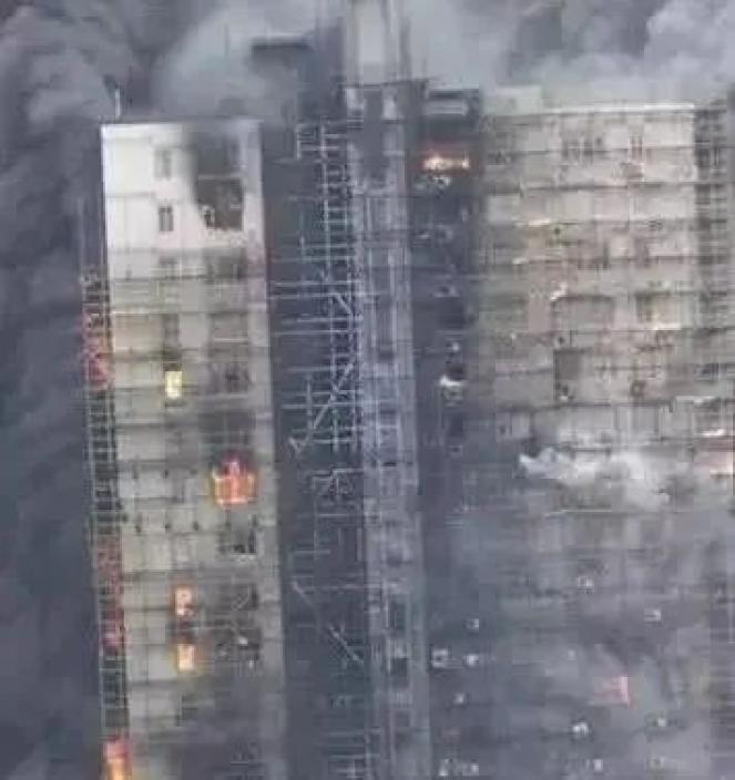 102010年11月15日,上海市静安区胶州路一幢28层公寓楼发生特别重大火灾事故,共造成58人死亡、71人受伤。事故直接原因:施工人员违规在 10 层电梯前室北窗外进行电焊作业,电焊溅落的金属熔融物引燃下方 9 层位置脚手架防护平台上堆积的聚氨酯保温材料碎块、碎屑引发火灾。