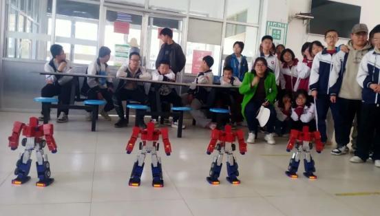 在科技互动区,“擎天柱”机器人组成的“变形金刚团”成为焦点。它们不仅能伴随音乐翩翩起舞,更能通过语音指令完成前进、旋转、俯卧撑等复杂动作。当孩子们喊出“擎天柱变形” 的指令时,机器人瞬间完成形态转换,金属质感的机械臂在空中划出流畅弧线,引发阵阵惊叹。智能机器狗“铁蛋”则化身全能小助手,在人群中灵活穿梭。它不仅能熟练背诵《静夜思》等古诗,还能即兴演唱流行歌曲,甚至完成跨越障碍的高难度动作。在编程飞机体验区,9架红色无人机组成编队,在学生们的操控下时而盘旋上升,时而俯冲翻转,机翼划出的优美轨迹与春日晴空构成动人画面。