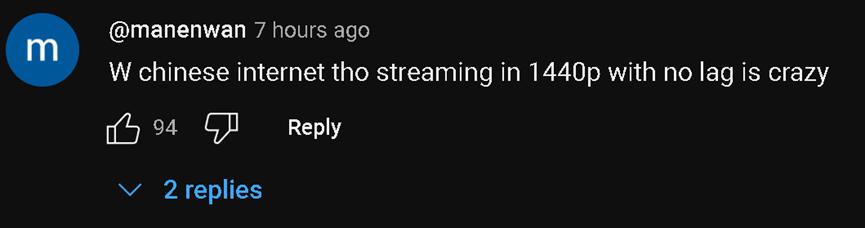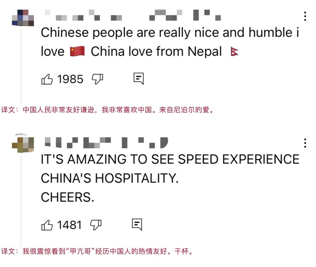 在他视频的评论区中,外国网民除了关注到中国民众的热情和友善,还不乏对中国网速的称赞。有网民称,在“甲亢哥”去过的所有国家中,不仅中国人是最友善热情的,中国的市容市貌以及网速也都是最好的。
