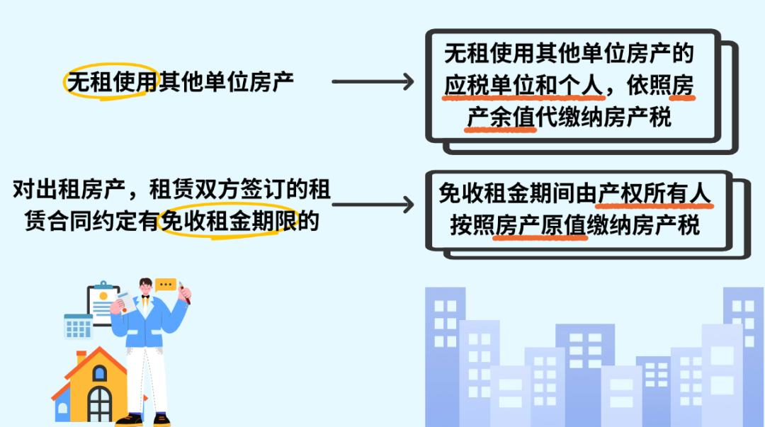 因此,企业租赁房产租金为零,若属于“无租使用”情形,使用人按照房屋余值代为缴纳房产税;若属于“免租期”情形,房屋产权所有人按照房产原值缴纳房产税。