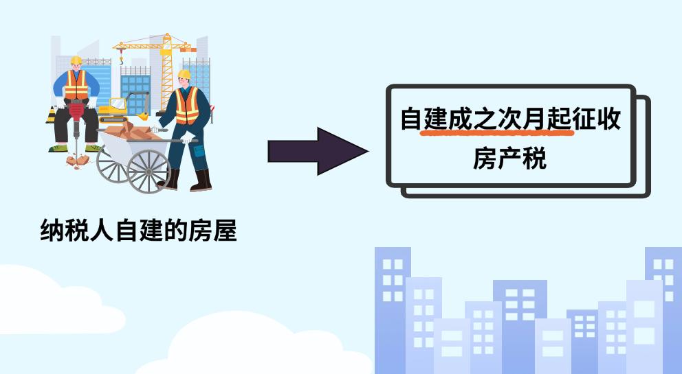 根据《财政部 税务总局关于房产税若干具体问题的解释和暂行规定》(财税地字〔1986〕8号)规定,纳税人自建的房屋,自建成之次月起征收房产税。