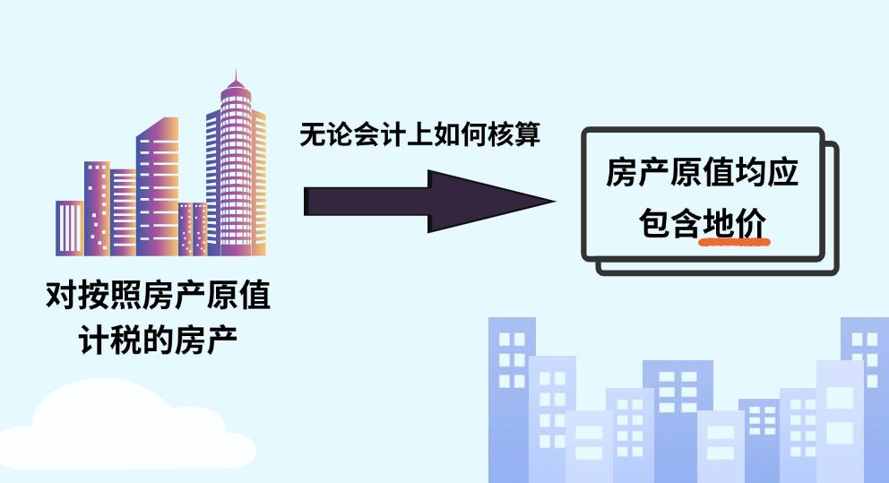 根据《财政部 国家税务总局关于安置残疾人就业单位城镇土地使用税等政策的通知》(财税〔2010〕121号),对按照房产原值计税的房产,无论会计上如何核算,房产原值均应包含地价,包括为取得土地使用权支付的价款、开发土地发生的成本费用等。宗地容积率低于0.5的,按房产建筑面积的2倍计算土地面积并据此确定计入房产原值的地价。