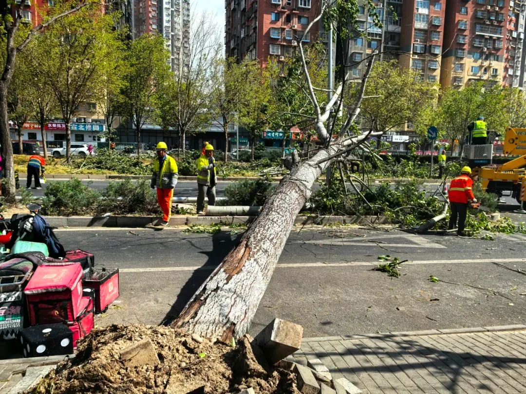 大风刮倒843棵树,无人员伤亡截至4月12日15时,北京市园林部门累计出动巡查抢险人员21956人次,车辆2607台次,倒伏树木843棵、折枝2572处、压车30辆、压线8处、压房6处,堵路16处,已全部处理完毕。