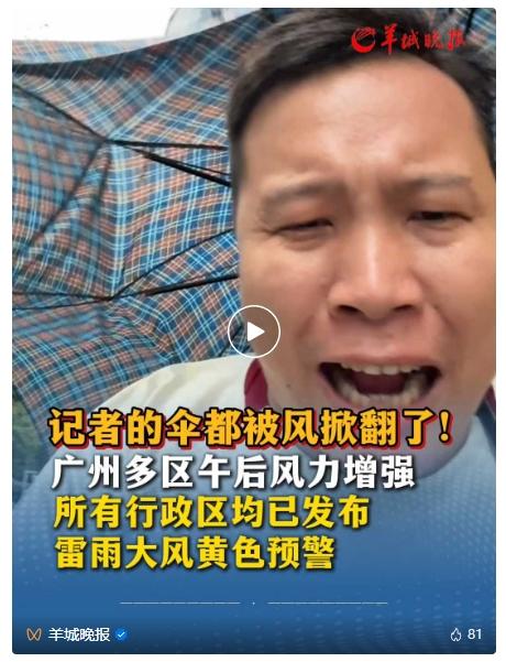 根据广州市气象台消息,据市气象台监测,广州市达到启动气象灾害(雷雨大风)Ⅳ级应急响应标准。广州市气象灾害应急指挥部决定从12日13时30分起启动广州市气象灾害(雷雨大风)Ⅳ级应急响应。