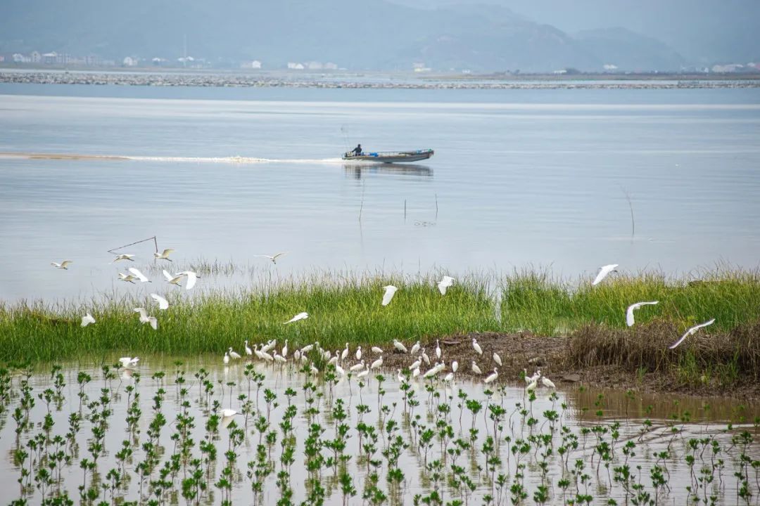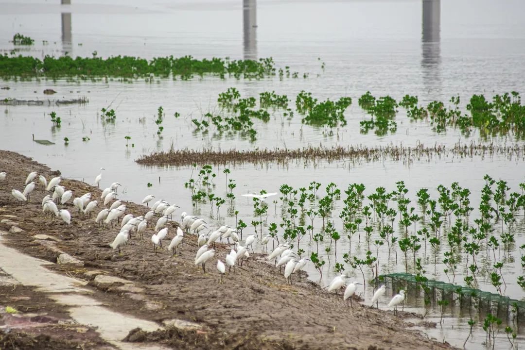 图|任秀玲山下滩涂,郁郁葱葱的红树林已超20万棵,与繁多的白鹭、弹涂鱼、招潮蟹形成了靓丽的海滨生态景观。