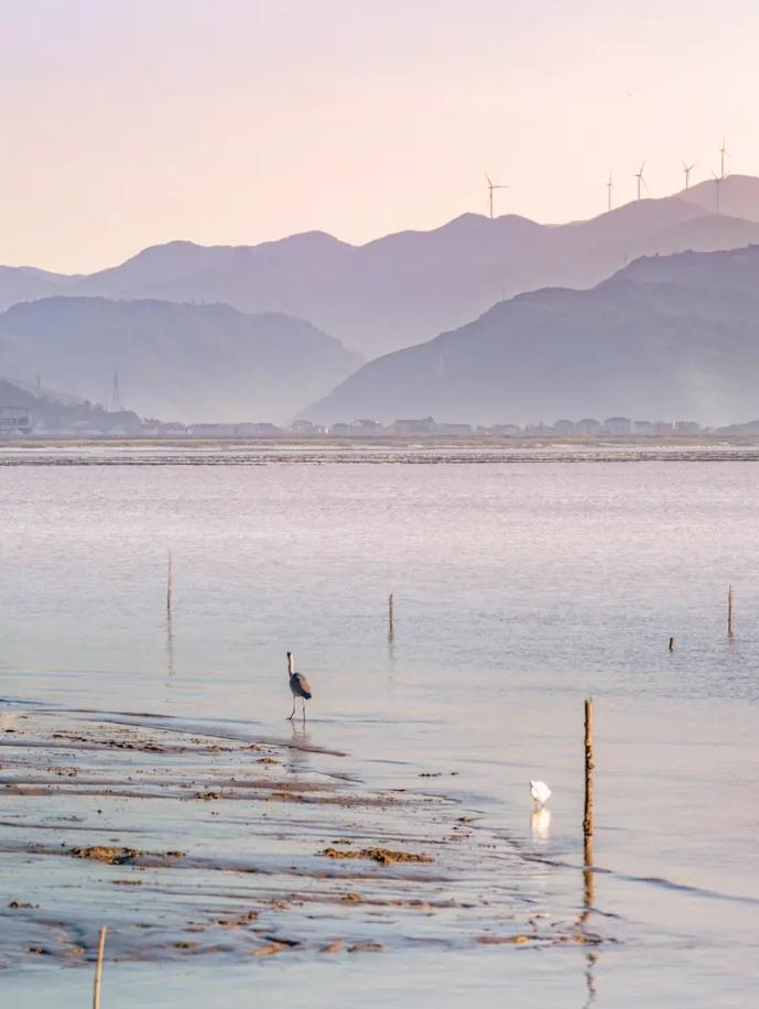湾岬相连,滩涂广阔,立于滩涂中的健跳青山岛,是三门县鸟类重点栖息地保护区之一,也是不可错过的观鸟胜地。
