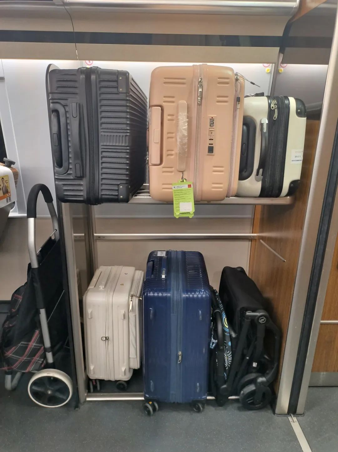 05婴儿车、小推车不能放在行李架上。
