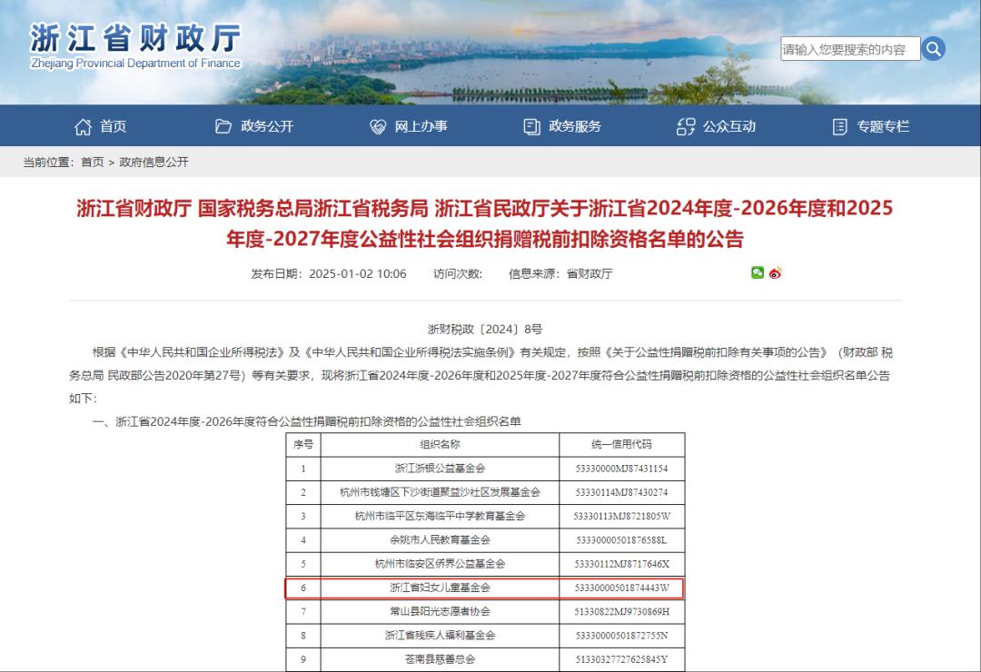 浙江省妇女儿童基金会已获得税前扣除资格二、个人抵税申报流程