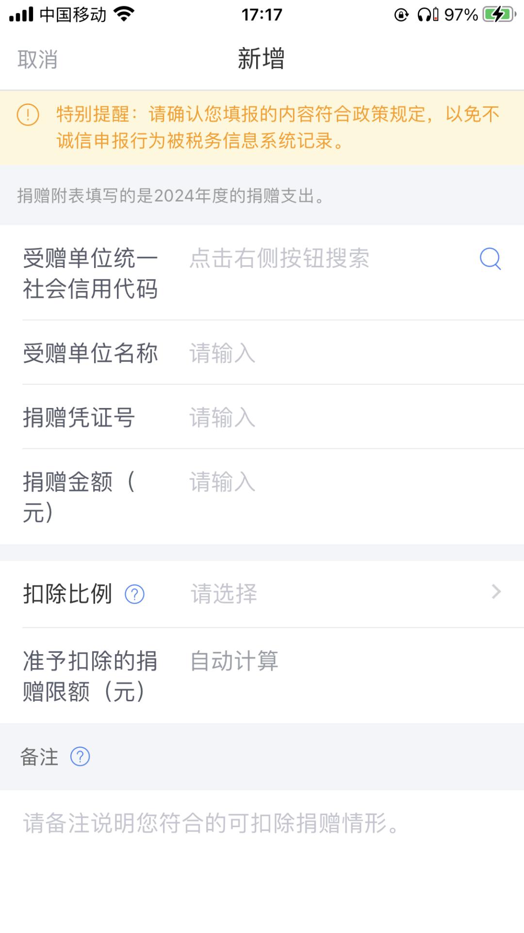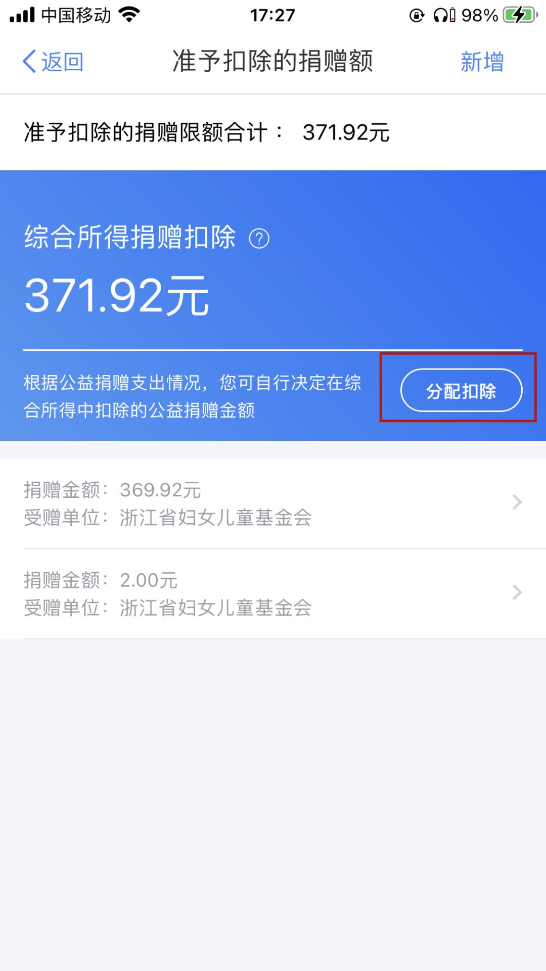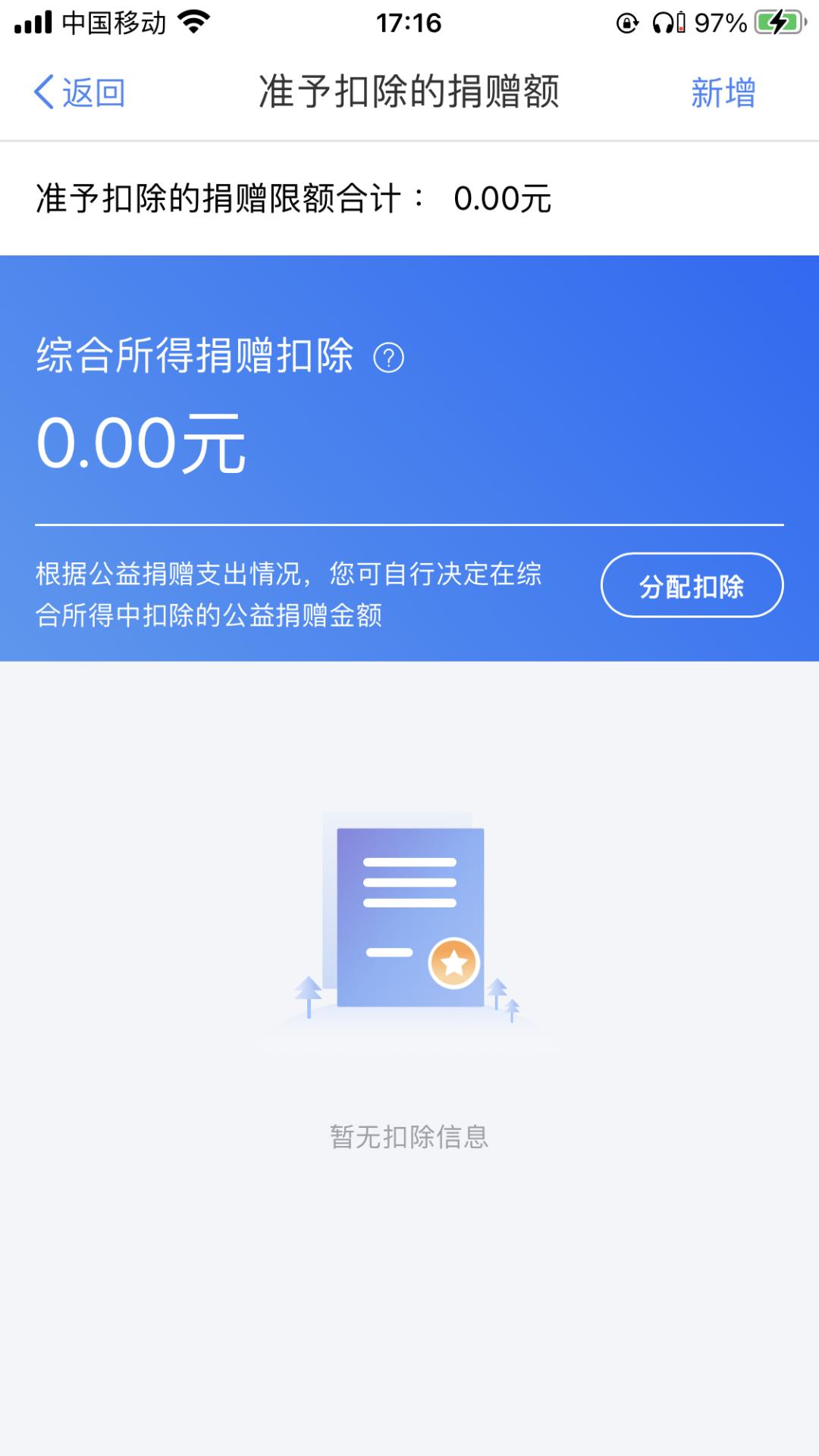 三、在“准予扣除的捐赠额”页面中点击“新增”