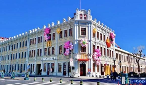 从景阳街进入靖宇街的第一个高楼,是当年的东永德旅馆。因为这座楼位于街角最醒目的地理位置,也被称为中华巴洛克一号楼。如今外墙上悬挂巨大的粉色花瓣和商业标识,瞬间成为年轻人拍照打卡的旅游胜地。然而,这座建筑最独特的地方并不在它的外表,而是其与众不同的建筑风格和楼顶的六角望火亭设计。