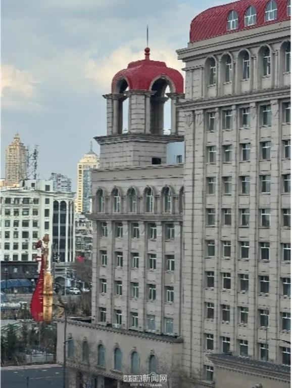 1930年前后的东永德和如今复原后的东永德“这栋楼最主要的特点是它的转角顶楼处有六角‘凉亭’,这实际是当年的‘望火亭’,是为了消防安全,派专人在街角最高建筑处监督值守使用的。”阚凯说,在中华巴洛克历史文化街区,你会发现,几乎所有把边的建筑楼上都有这个所谓的凉亭,同义庆中外杂货店、义丰源大楼等建筑也有。即便是一百多年后的现在,我们在哈尔滨大街上仍然能看到百年前建筑的遗风。在临街旧楼改造建筑上,我们仍然能看见楼顶上各类复古小“凉亭”,虽然如今已经失去其消防瞭望的功能,但这种建筑风格仍然保留了下来。