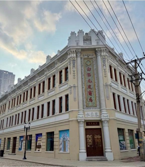 如今哈尔滨建筑顶部仍然能看见效仿中华巴洛克望火亭设计道外中华巴洛克建筑的“魂”是在它的院落中。每一个院落都有自己的故事,每一个院落里都杂糅了中西方文化。天井式建筑是当年哈尔滨中华巴洛克设计的神来之笔。以泰来仁建筑为例,受建筑用地局限,一楼店面面积一般不大。因为空间不够,还要满足下商上住开门开窗的需求,设计通过外木廊作为交通,满足楼上住宅的需求,这就是天井式设计。天井式设计能极大地增加冬季人们的户外活动空间,同时还不影响建筑采光。