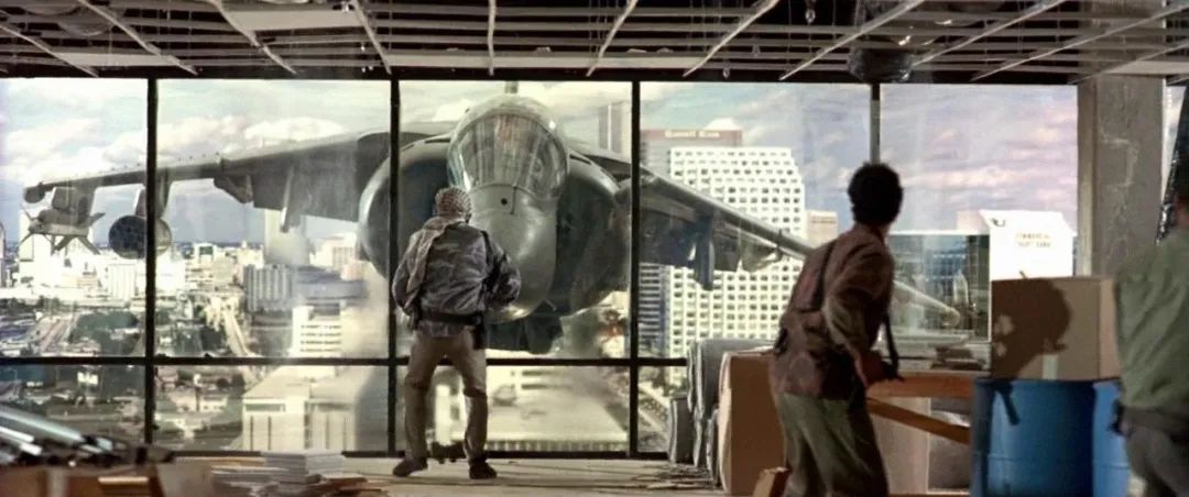 在影片最惊险的“高空战机撞击大楼”场景中,观众会看到一个搞笑的画面:
