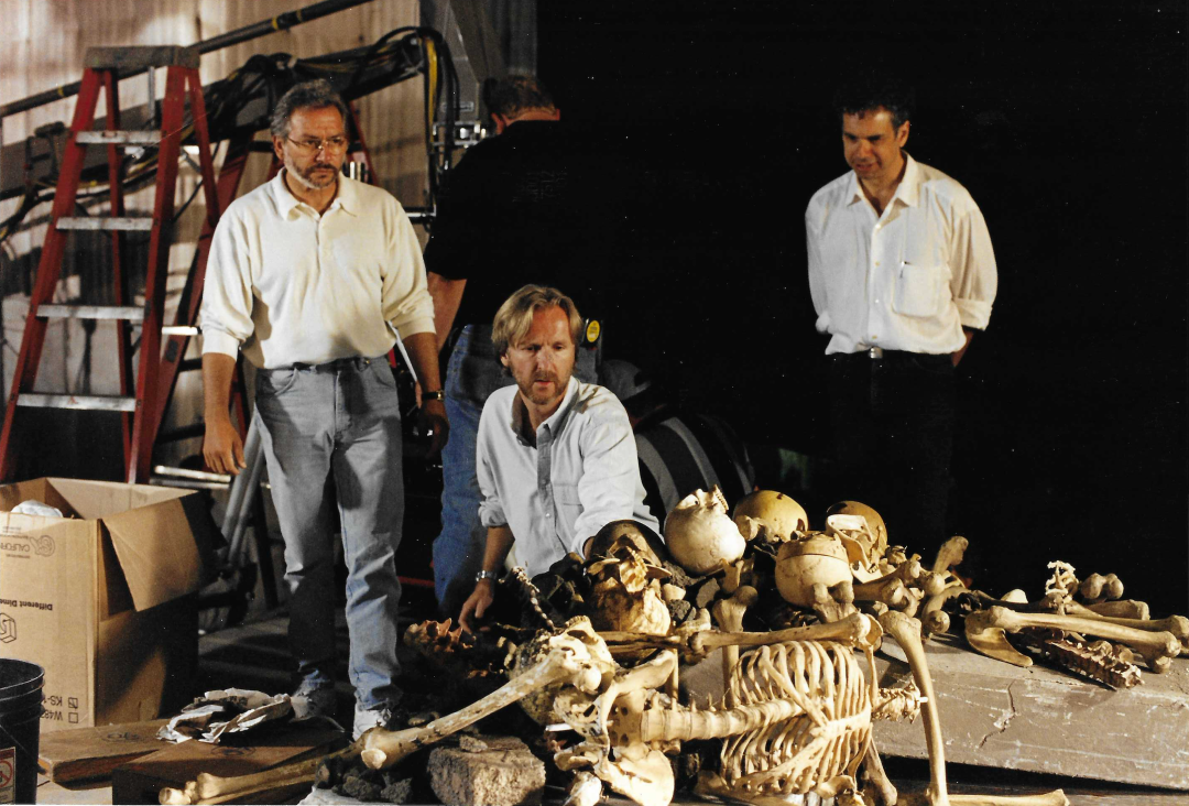 △布鲁诺(左一)和卡梅隆导演(中)