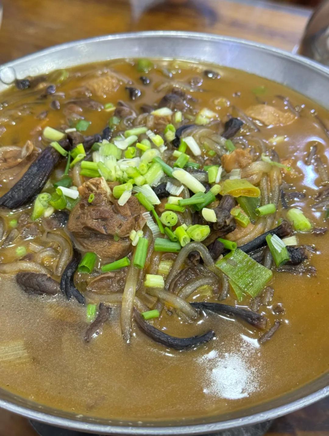 小鸡炖蘑菇色泽鲜艳,鸡肉鲜嫩多汁,榛蘑香气四溢,粉条爽滑可口,汤汁浓郁鲜美,具有浓郁的东北地方特色。