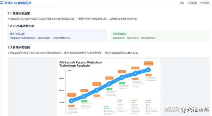 在上述光锥智能实际体验后,扣子Agent按照要求生成的报告不仅详细分好了对应的报告节点,且在UI设计上体验拉满,给到了图文并茂的调研报告。