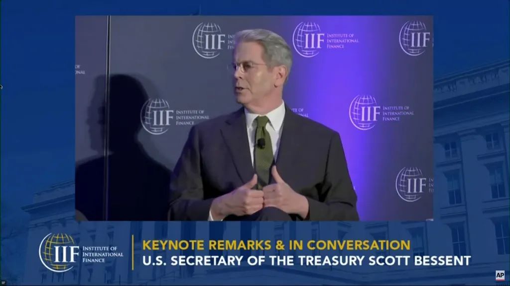贝森特23日在华盛顿的国际金融协会(IIF)发表主题演讲。据路透社,他演讲后接受媒体采访称,对于中美这两国全球最大经济体而言,要想重新平衡贸易关系,让局势“降级”至关重要。