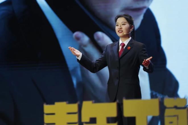 接下来,西青区人民法院青年干警李姝讲述了西青区人民法院民一庭庭长李月辉的爱民故事。从农民工讨薪案件到物业纠纷,李月辉始终秉持“如我在诉”的理念,将人民的诉求放在心上,以事实为依据,以法律为准绳,公正审判,赢得当事人的认可与称赞。李姝饱含激情地说:“如我在诉,是对公平正义的执著追求,是对民众权益的坚定守护,是对法治尊严的无畏捍卫,是对初心使命的躬身实践。”