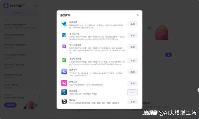2、强调生态协同,集成飞书、高德、墨迹天气等MCP扩展。