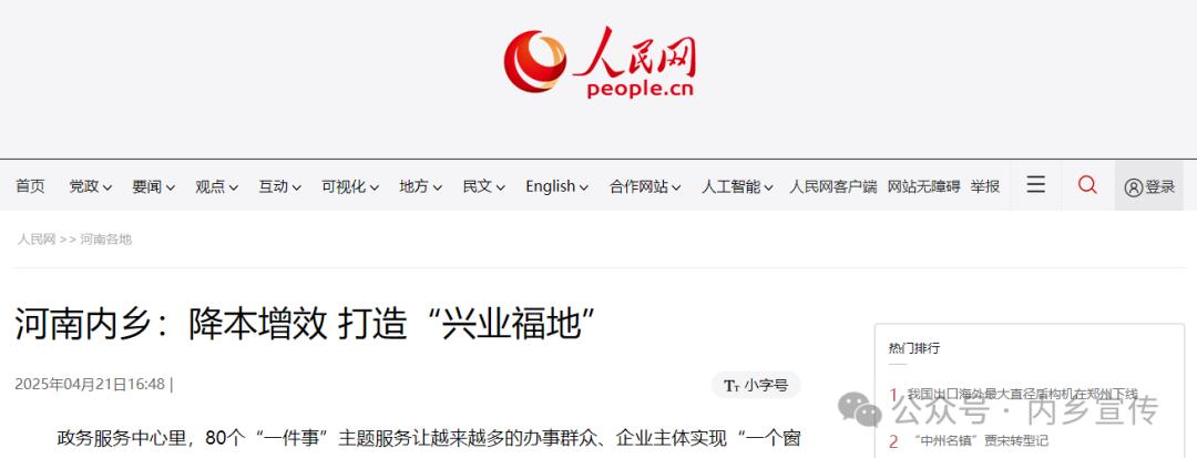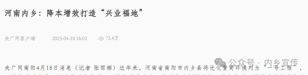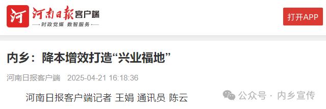 内乡宣传向上滑动看下一个原标题:《【人民网】内乡:降本增效 打造“兴业福地”》