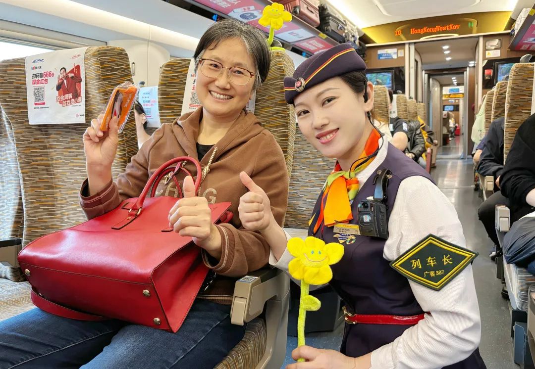 列车广播设置了粤语到站及安全提示,确保每位旅客都能及时接收到重要信息。车上还备有充电插头转换器,方便香港旅客使用。