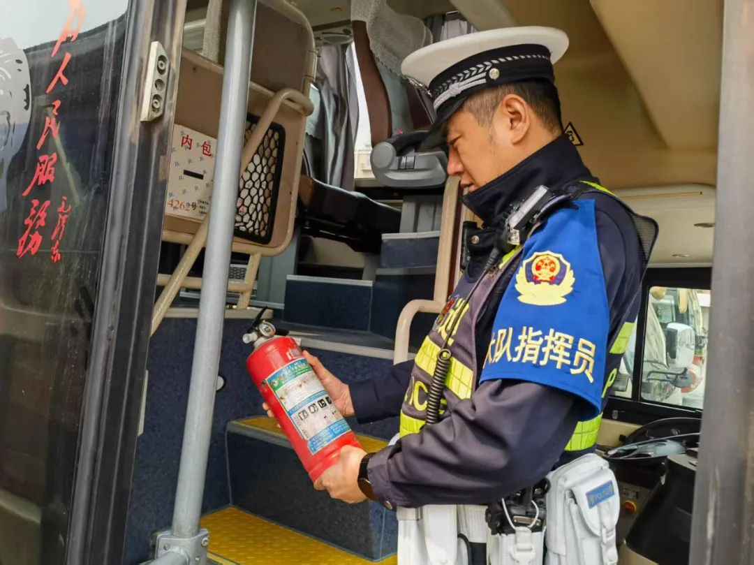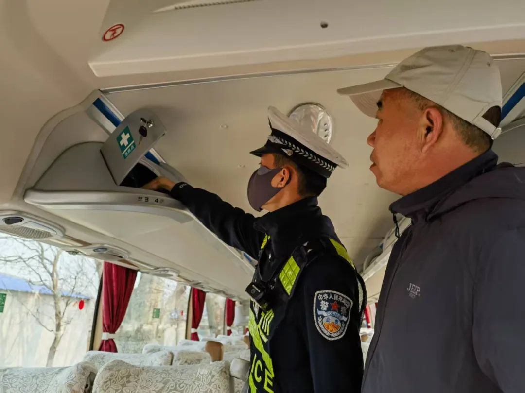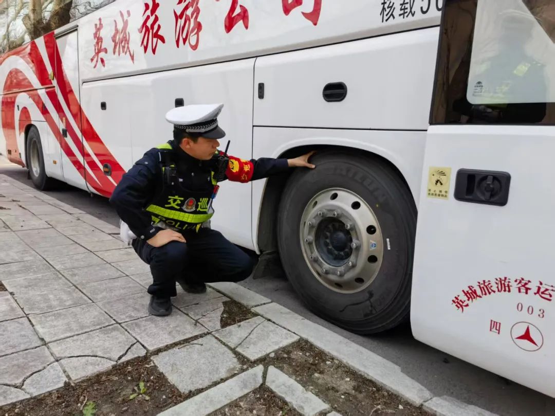 在车辆安全状况检查环节,包保民警苏显峰、杨忠一重点对旅游客运车辆的轮胎、刹车系统、灯光、转向装置、灭火器、安全锤等关键部位和安全设施进行了全面细致的检查。逐一查看车辆的定期检验记录、维护保养记录,确保车辆技术性能良好,安全设施齐全有效。针对检查中发现的部分车辆存在轮胎磨损严重、灯光损坏等问题,民警当场下达了隐患整改通知书,责令企业立即对问题车辆进行维修和保养,严禁 “带病车” 上路行驶。同时,民警向企业负责人和驾驶人强调了车辆安全性能对道路交通安全的重要性,要求企业建立健全车辆日常检查和维护制度,加强对车辆的动态监管,及时发现和消除车辆安全隐患,确保每一辆营运车辆都处于良好的运行状态。