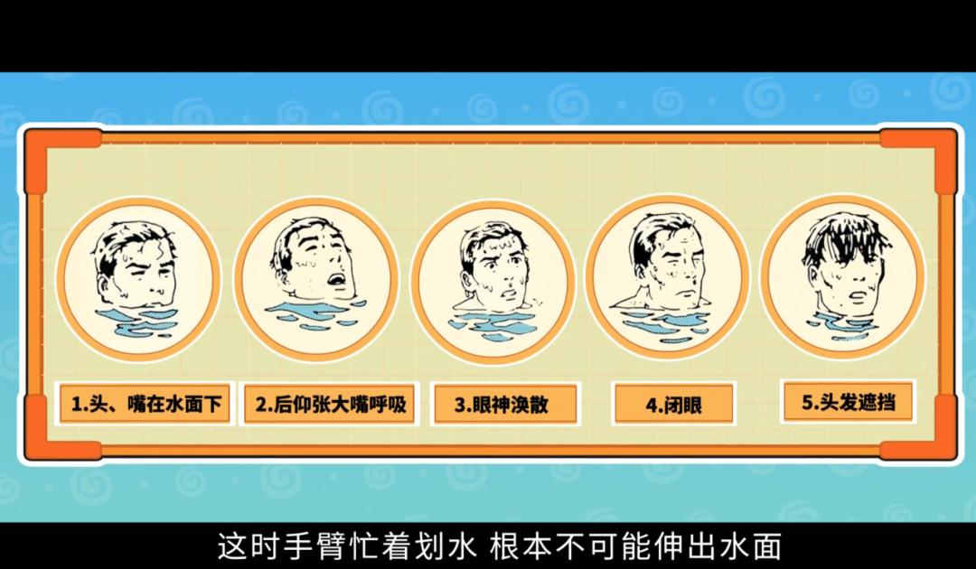 2. 手臂可能前伸,但无法划水向他人移动。3. 在水中直立、不能踢腿,往往挣扎20—30秒之后沉下去。