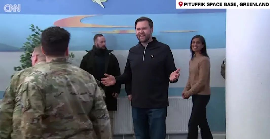 当地时间3月28日,美国副总统万斯强登格陵兰岛,视察美军基地 CNN视频截图“特朗普不调头,但其他国家会”