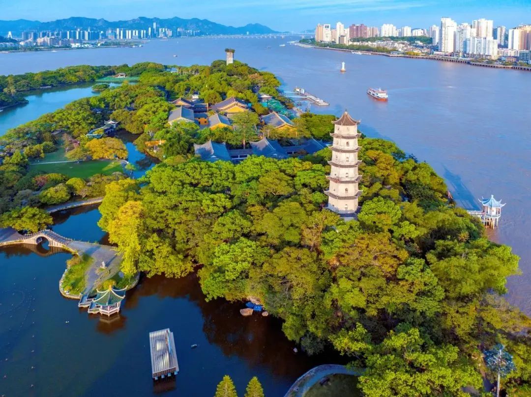 江心屿双塔与古寺禅意交织