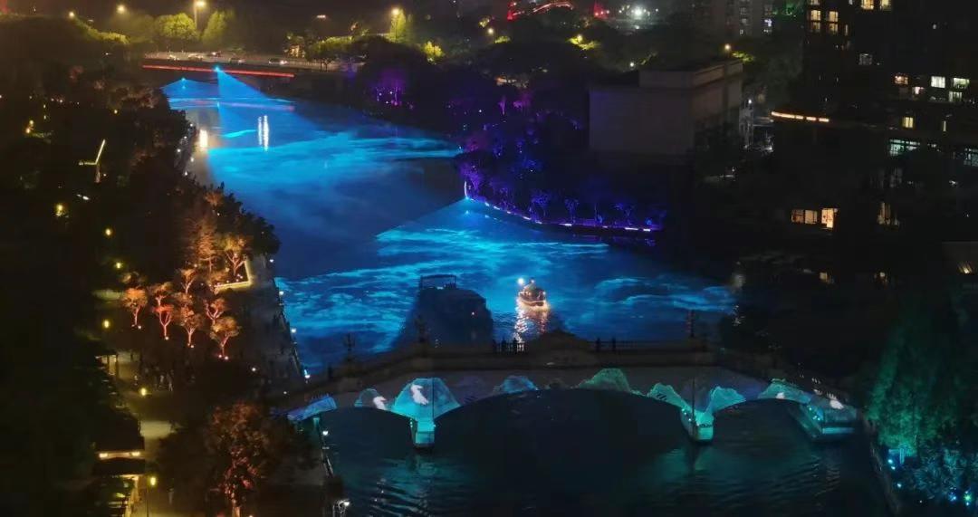 《塘河夜画》以瓯越母亲河为舞台,打造全国首创的城市记忆夜游演出。