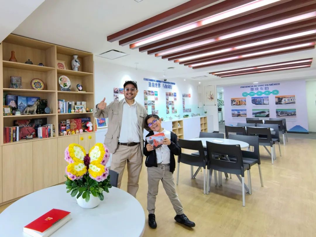 ▲ 交流空间展示(左右滑动查看)墨西哥“绿驰”交流空间设有绿驰印象、影音视画、车行天下、墨境车韵、工匠精品、与你同行、中国书架、AI同框、咖香论道、故事长廊等10个展区,集中展示了中国中车创新发展成果和服务墨西哥合作成果,让当地民众不出国门也能认识了解中国中车。