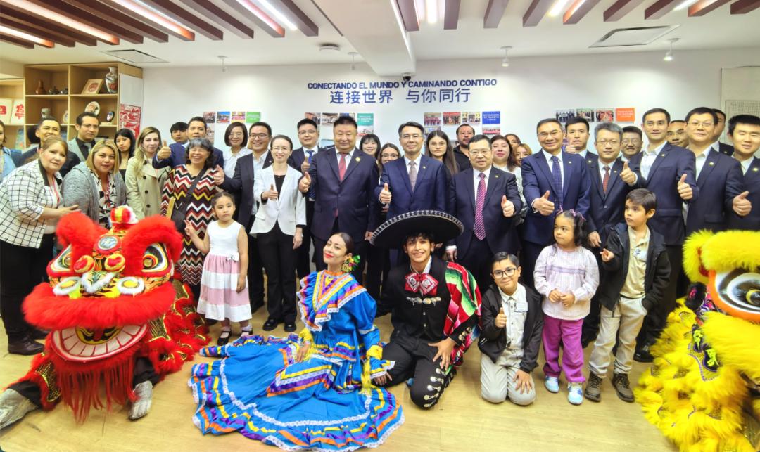 △左右滑动查看在参观环节,王铵向因墨西哥地铁1号线项目结缘的中墨夫妇代表赠送“喜”字剪纸,祝福二位永结同心、多子多福。李敏向墨西哥“绿驰”负责人高风赠送中车员工文艺作品集萃《文心正道》。大家还通过“AI同框”“穿越”到中国,体验“爬长城”“登天坛”,感受数字技术带来的乐趣。随着欢快奔放的音乐声响起,墨籍员工现场表演舞蹈《墨西哥之韵》,将中墨文化交融的热烈氛围推向高潮。