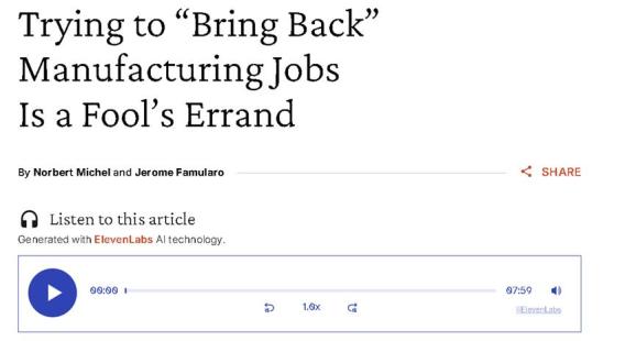 这也是为何越来越多的美国媒体和智库专家,都在全方位地批评美国政府从乱加关税到“让制造业岗位回流”的错误认知。在他们看来,这才是“动摇国本”。审核 | 周扬